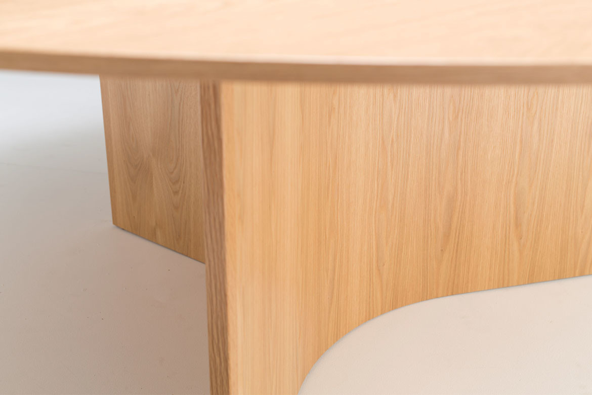CALDERA table range is offered in an extensive range of rounded diameters and heights, that are supported on single shaped pedestals with bevelled, sharknose edges to compliment a wide spectrum of commercial and residential spaces.