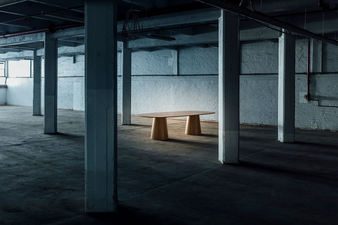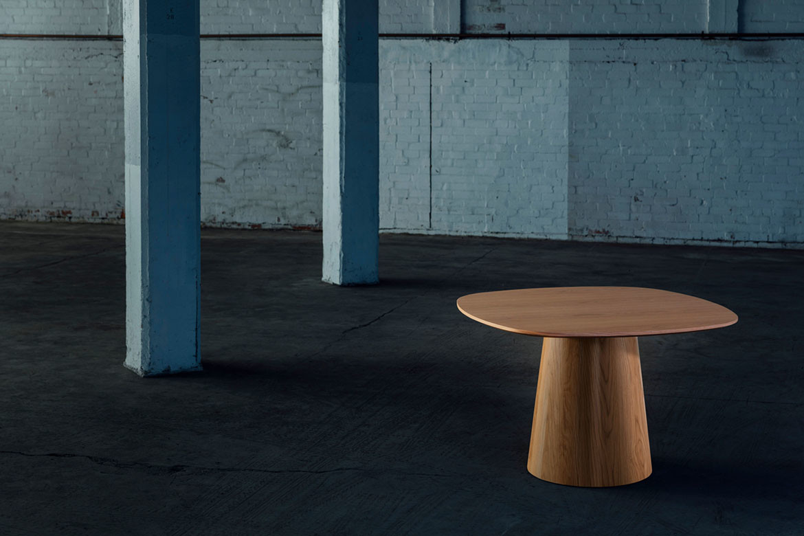 LIQUEUR tables by Didier speak of casual conviviality in timber form. Conical legs at the base create a distinctive silhouette from any angle, fabricated in American Oak with optional stain finishes. LIQUEUR’S confident style can be seamlessly adapted to most any interior context, offering power and data integration as well as a boundless choice between elliptical, round, oval or rectangular tops.